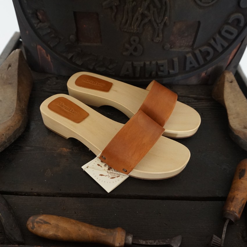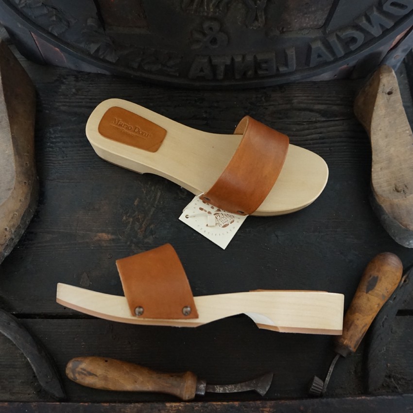 Zoccolo Michela aus pflanzlich gegerbtem Leder und Holz – toskanische Handwerkskunst
