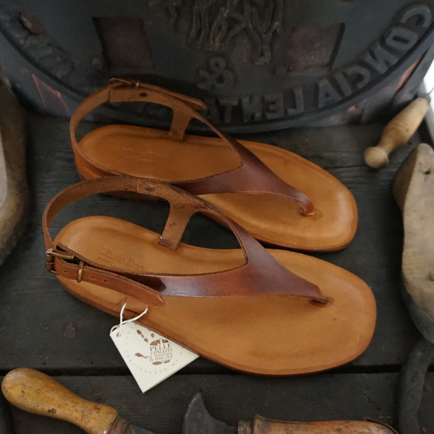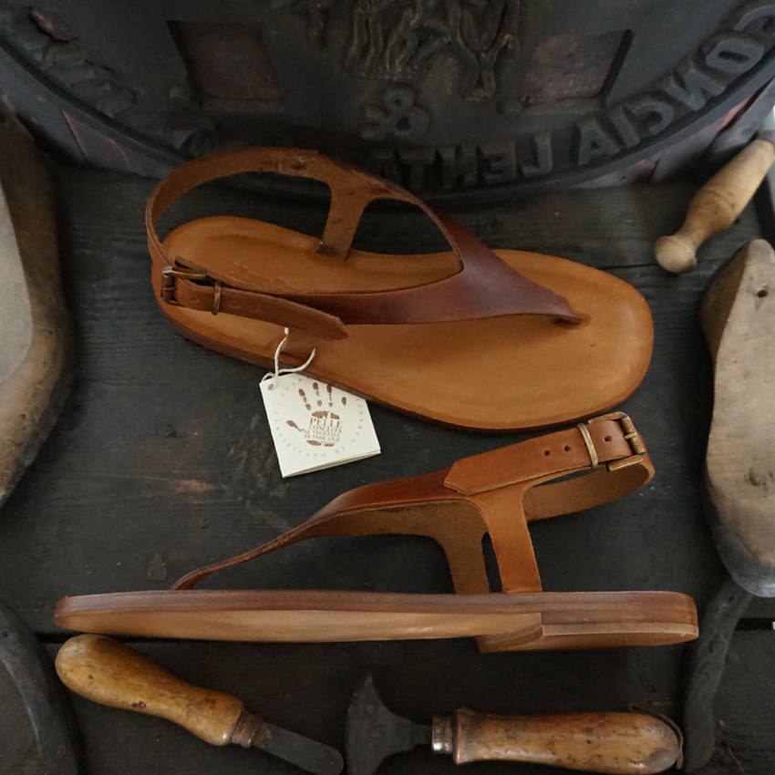Jede Sandale hat den Garantieschein des Konsortiums Pflanzlich Gegerbtes Leder.