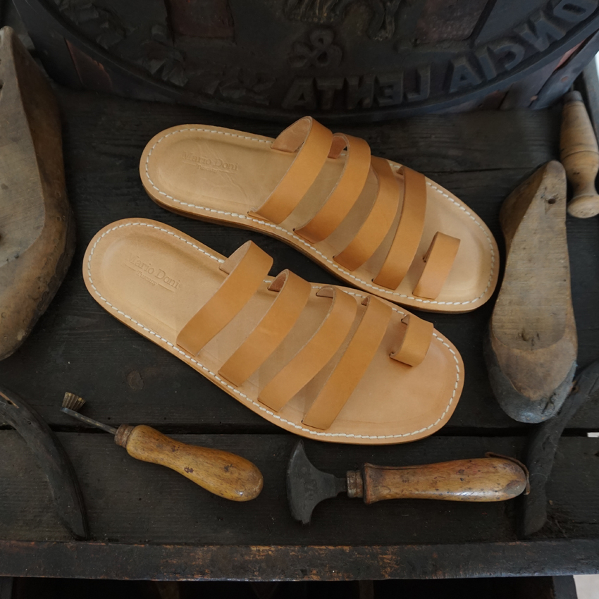 Flip-Flop-Sandale aus flexiblem Leder mod. Scarperia. Handgefertigte Herrensandalen aus flexiblem Leder, für Sie von Mario Doni gefertigt.