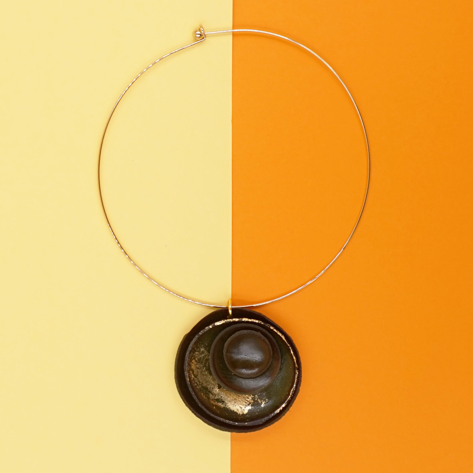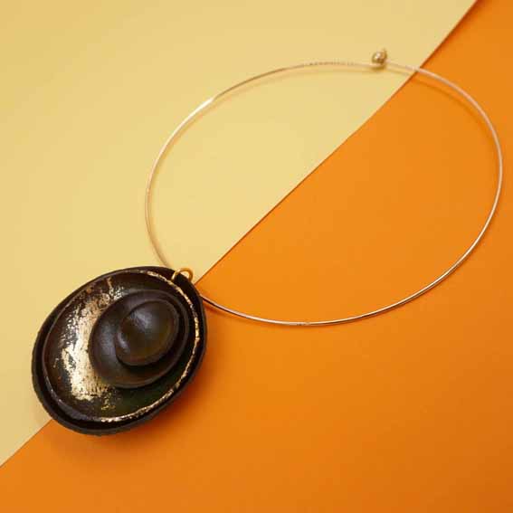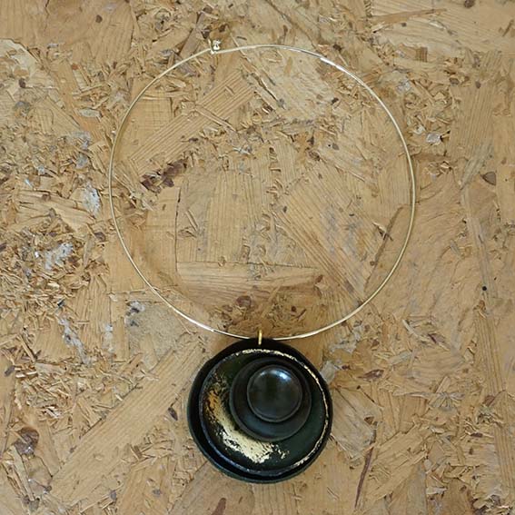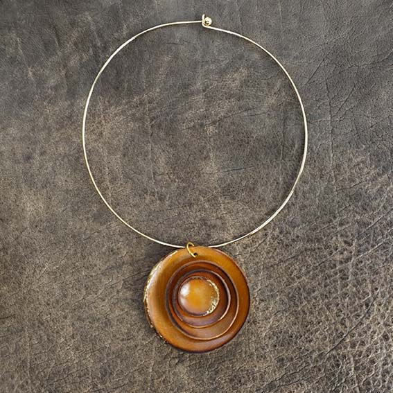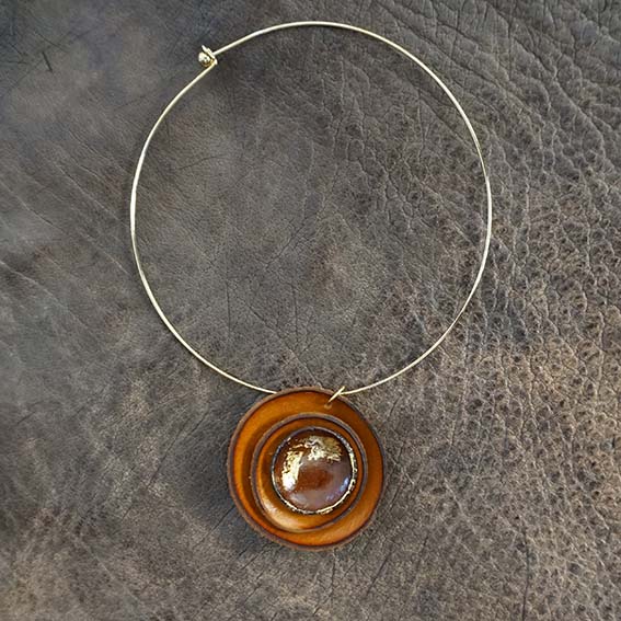 Handcrafted leather necklace, Mod. Fuoco Dorè