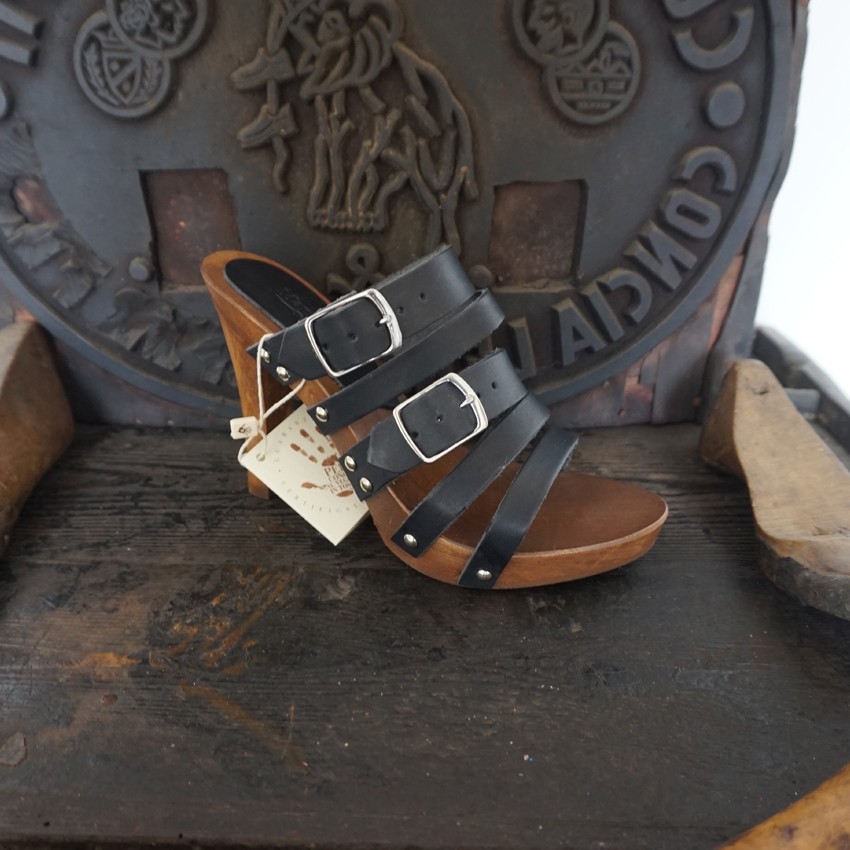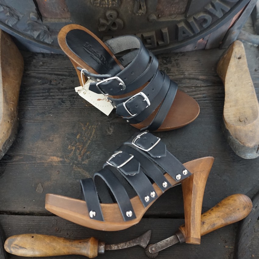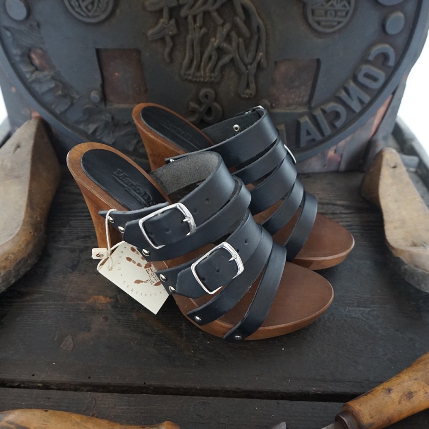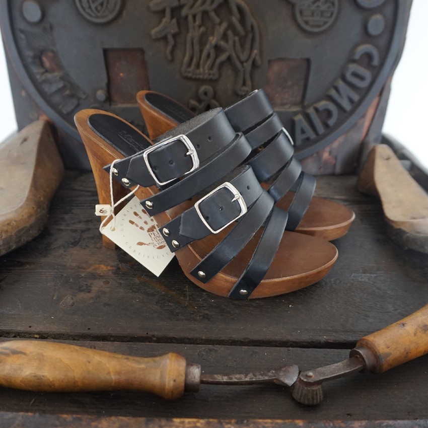 Women’s wooden and leather clogs – Mod. Ludovica height 10 cm. Clogs made of wood in the best tradition of craftsmanship Tuscany.