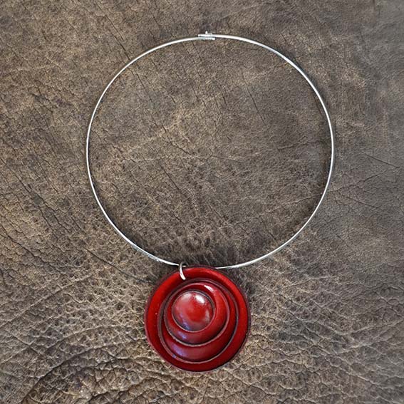 Così è nata questa nuova linea di Gioielli in pelle come la Collana artigianale mod. Fuoco, dove ogni pezzo di pelle reagisce, si crea e si modella in forme diverse e per realizzare prodotti veramente artigianali come tradizione per Mario Doni.